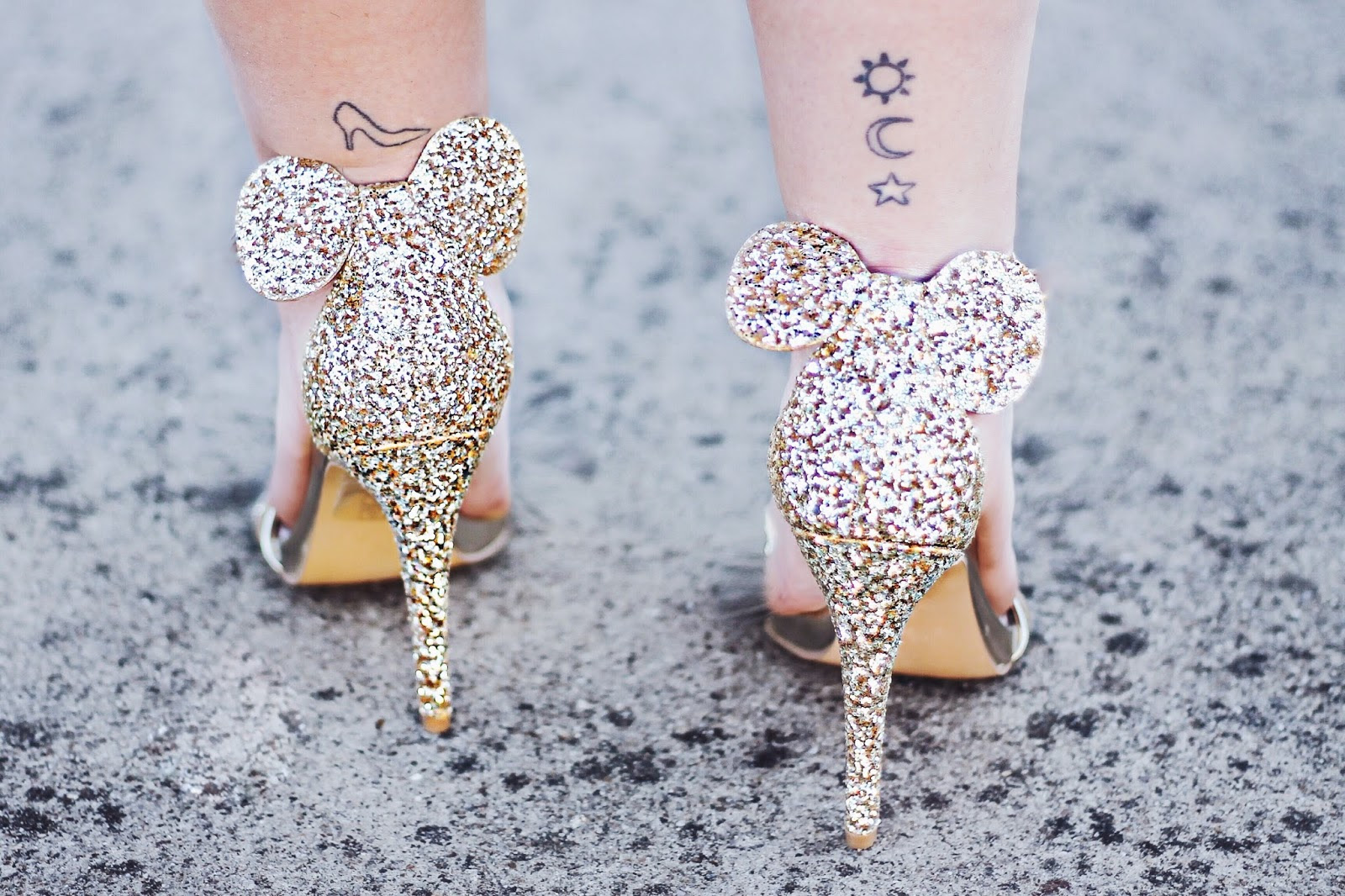 Escogí las sandalias de Primark, de edición limitada Disney. Como ya os enseñé por stories, he tenido una suerte increíble al conseguirlas y aunque son de lo más monas en glitter dorado y las orejitas de minnie en la parte trasera; son un poquito incómodas, todo hay que decirlo..Pero como siempre se ha dicho; "para presumir hay que sufrir.."